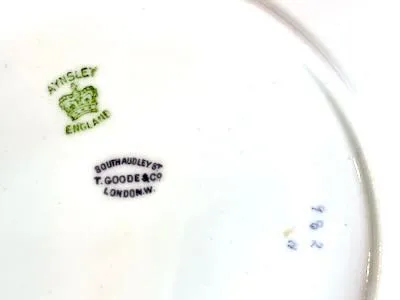 Produced by Aynsley, one of the most respected names in English bone china, this plate reflects a tradition of craftsmanship that spans over a century. Established in Staffordshire, Aynsley built its reputation on fine materials, detailed decoration, and designs that bridged utility and beauty. Antique patterns such as No. 982 are increasingly sought after, particularly as complete or partial services become more difficult to assemble over time.