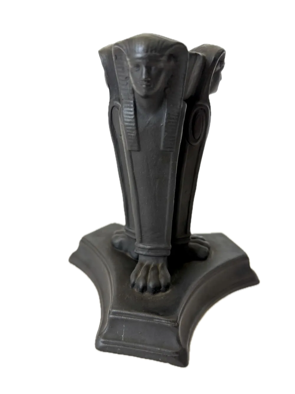 Wedgwood Black Basalt Egyptian Sphinx Monopodia Candlestick, Early 19th Century (circa 1800–1815)