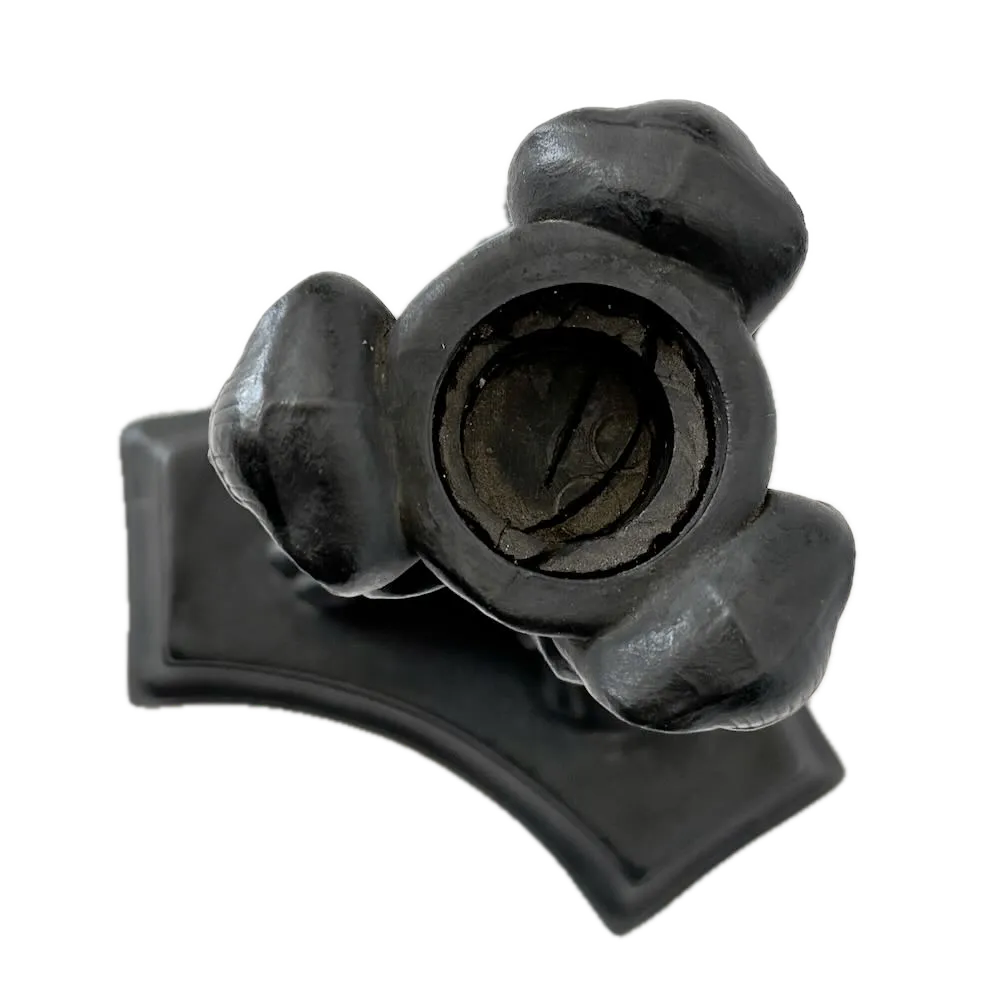 The upper section retains the central socket, though the original candle nozzle or sconce is no longer present. Historically, these nozzles were often decorated in contrasting rosso antico (terracotta-colored) elements, creating a striking two-tone effect against the black basalt body.
