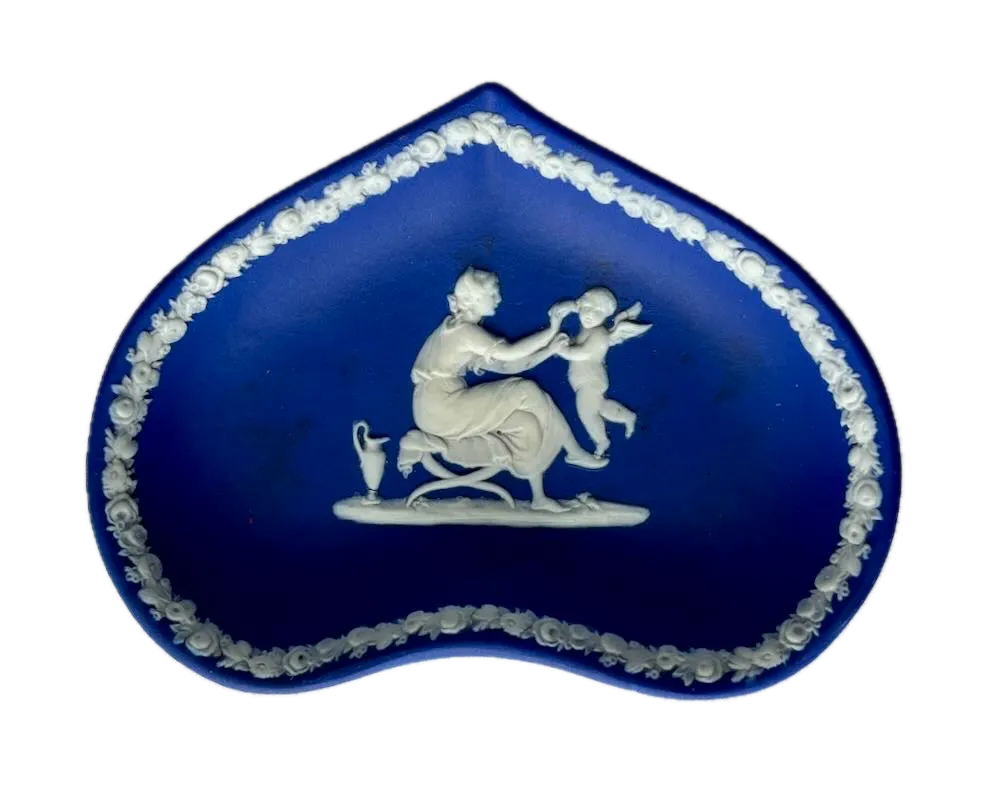 Wedgwood jasperware has long been collected for its combination of technical innovation, historical reference, and timeless design. While many examples were produced over time, earlier pieces with clear marks, strong color, and well-preserved relief continue to hold enduring appeal. The heart-shaped form adds a subtle decorative distinction, offering a softer and more sculptural alternative to the more commonly encountered round or oval dishes.
